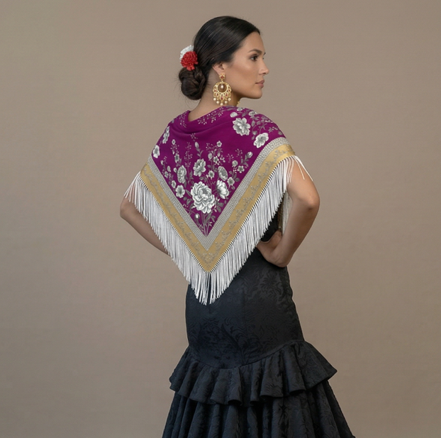 ELEGI PARA MI HIJA UN MANTON "SEVILLA VIOLETA", PORQUE ME ENCANTARON LOS COLORES Y PORQUE LE COMBINABA A LA PERFECCION CON EL VESTIDO.