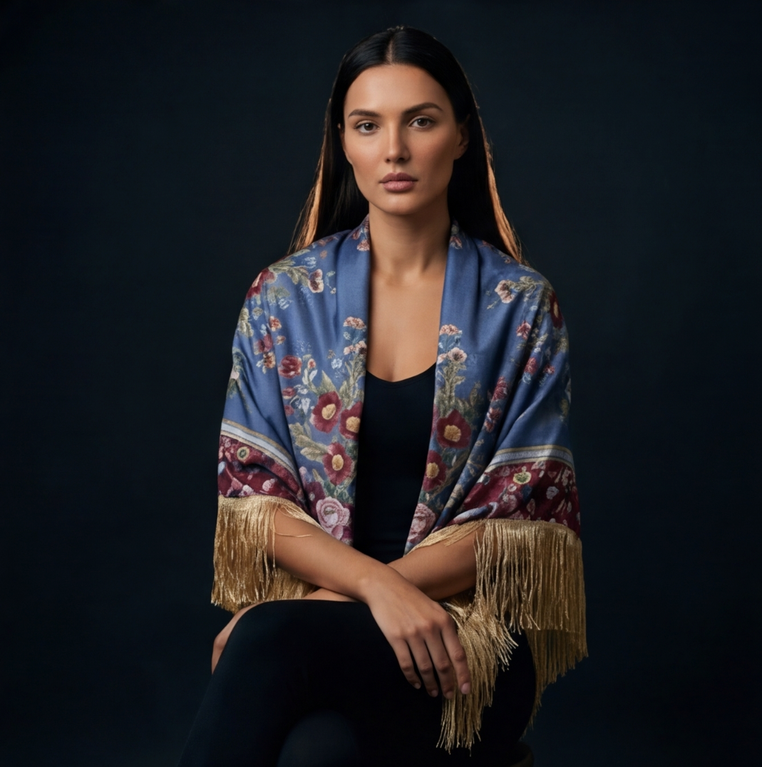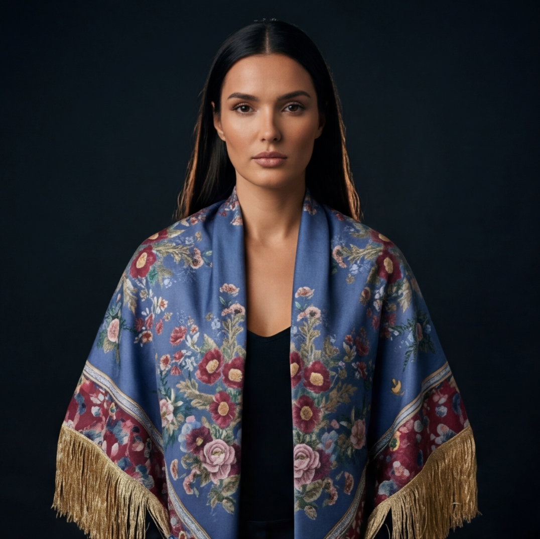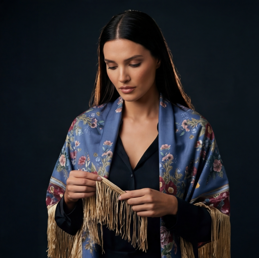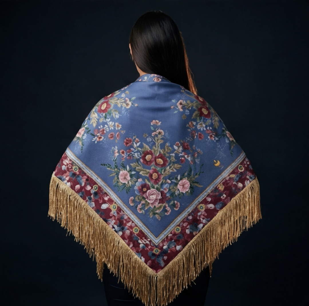 Nuestros mantones están diseñados para un cuidado sencillo sin perder su belleza. Puedes lavarlo a mano con agua tibia y jabón neutro. La seda se mantiene impecable sin necesidad de tintorería.