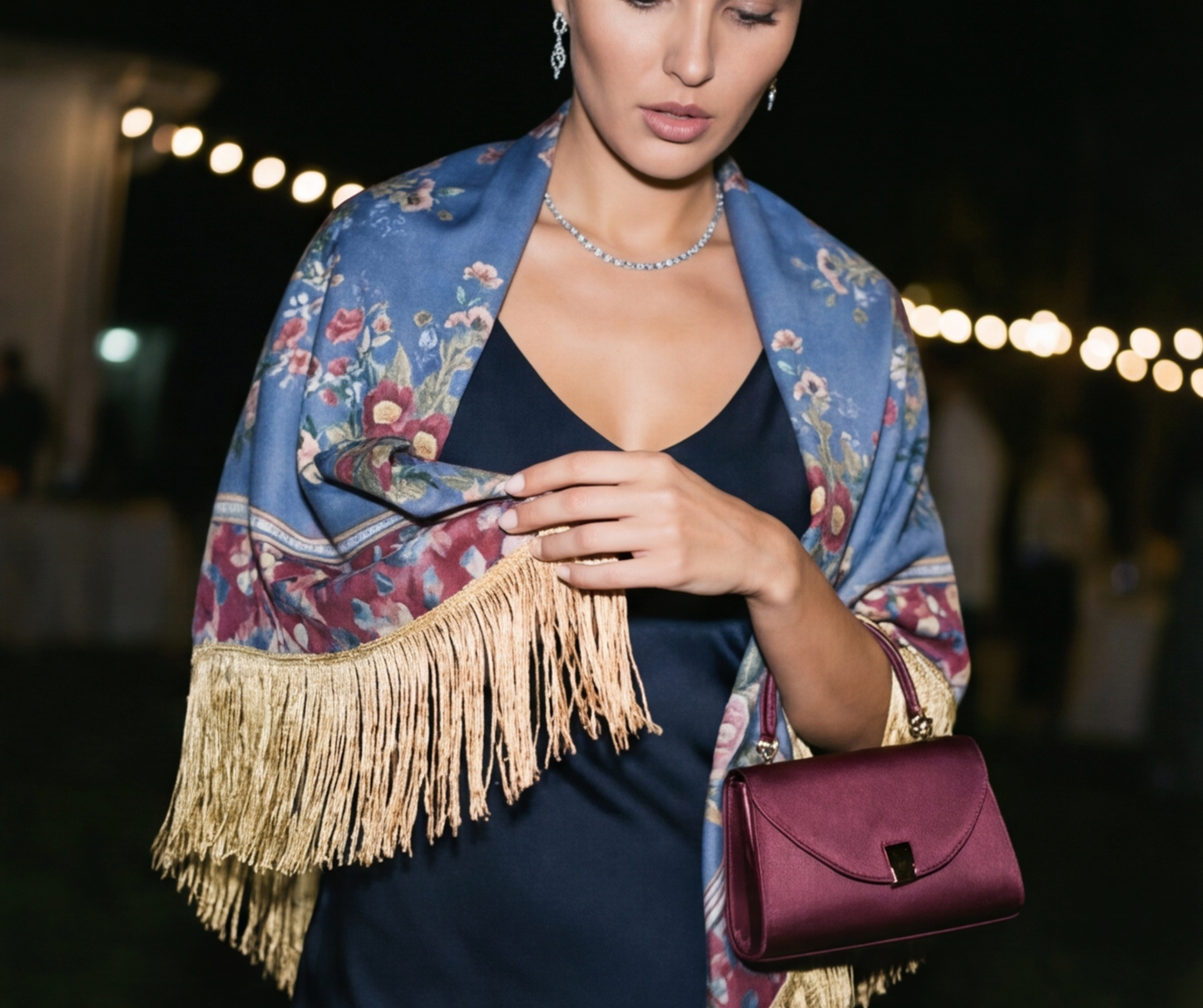 El Mantón Anémonas acaba de una vez por todas con la eterna elección entre ir guapa o abrigada. La seda se sentirá como un golpe cálido cuando el frío apriete para que lo des todo y el frío no te consiga amargar la noche. El tono borgoña es el color que mejor viste en invierno. Te da una luz increíble a la cara y transforma cualquier vestido sencillo en un lookazo de noche. Un acierto total que vas a usar mil veces.